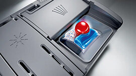 DosageAssist maximises the effectiveness of detergent tablets. Simply put the tablet in the specially engineered tray and the dishwasher will ensure it is completely dissolved and deliver superior cleaning results.
