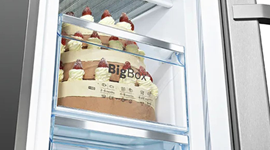 An extra-deep frozen food drawer for large frozen items like gateaux or pizzas. No matter whether you have to cater for a child’s birthday or freeze a wedding cake – in the BigBox you will find enough space with the convenience and ease of a drawer.