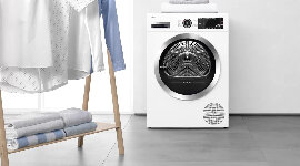 It’s easy to load and unload the drum thanks to the LED interior light and glass door with a 170-degree opening angle. Not simply blasting your fabrics with heat, the Sensitive Drying System features mild, warm air coming from all sides of the drum, gently drying the garments with assistance from the curving carriers inside the drum. Featuring the AutoDry system, internal sensors monitor the temperature and humidity within the drum for up to ten kilograms worth of laundry, providing the desired level of dryness without over-drying.