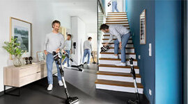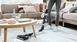 The vacuum cleaner comes with two exchangeable 3.0 Ah battery packs, which are part of the Power for All Alliance cordless system from Bosch Home & Garden. You can extend the runtime up to 33% with the exchangeable battery pack, which also enables you to clean on all levels. The rechargeable vacuum cleaner has an extended runtime of up to 40 minutes on Eco mode with non-electrical accessory and up to 10 minutes on Turbo mode with electrical floor nozzle.