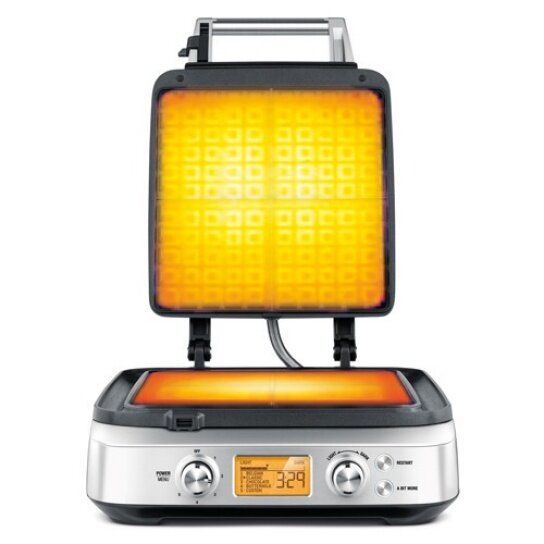 Thanks to Breville’s unique Waffle IQ technology, the appliance will calculate the cooking time based on the type of waffles you select. Choose from Belgian, classic, chocolate, and buttermilk, or try your hand at a custom creation. Whether you like your waffles crispy or chewy, you can get the texture you’re looking for thanks to 12 browning settings. No one likes extra-sharp edges or raw batter pockets, and these will be a thing of the past with Breville’s Thermal Pro heating system that distributes heat evenly throughout your slices. A countdown timer will take effect when you close the lid, and you can track your progress using the easy-to-read LCD display. Thanks to a non-stick coating, you won’t have to spend time scraping away batter that’s stuck to the plate. Additionally, the No Mess Moat will prevent batter from overflowing onto your benchtop.