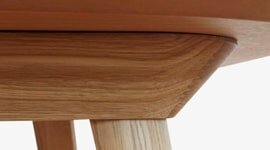 | Material | Solid oak or walnut frame. Oak or walnut veneered top and leaves. Felt-lined storage compartment for leaves. Mechanical bearing extension system. Clear polyurethane lacquer. |