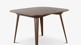 | Material | Solid oak or walnut frame. Oak or walnut veneered top and leaves. Felt-lined storage compartment for leaves. Mechanical bearing extension system. Clear polyurethane lacquer. |