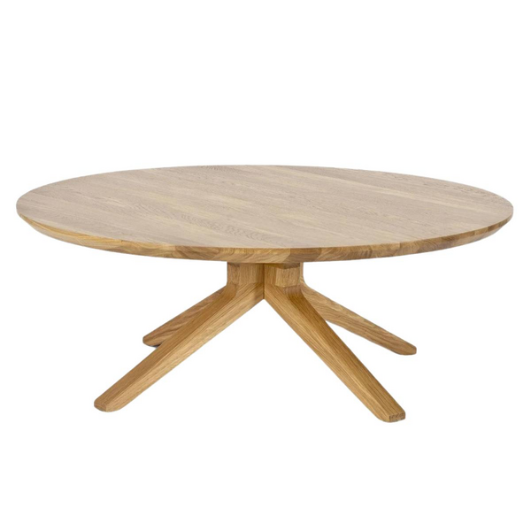 The Cross Round Coffee Table combines a low pedestal base with a 90cm veneered oak top, offering a sleek and sophisticated centrepiece for your living room. Its clear lacquer finish enhances the natural warmth of the oak, ensuring minimal maintenance and lasting beauty.