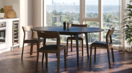 Create an intimate dining experience without the clutter: the extension leaf is stored in a concealed compartment under the table top when it’s not in use.