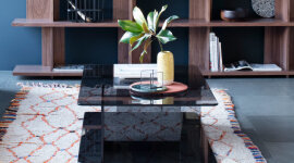 The right angles of this table create a clever division: you can store your favourite books or memorabilia nearby while having them on display for friends and family to see.