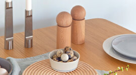 | Material Notes | Made from solid beech and available in a natural or black finish, it features a distinctive cylindrical base and spherical top, making for an organic form that fits your grip perfectly and feels smooth under the fingertips. |