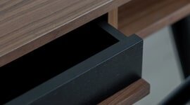 | Furniture Material | Solid oak or walnut drawer internals and handle |