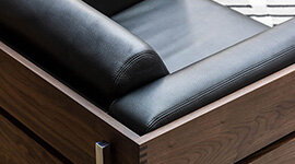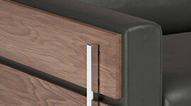 The Forum Collection is a masterclass in material interplay, combining rich textures and sleek finishes for a striking visual impact. The warmth of the solid walnut contrasts beautifully with the supple black leather upholstery, while chrome-plated legs add a touch of modern sophistication. This thoughtful combination of materials not only highlights the Forum’s distinctive design but also enhances its tactile appeal, making it a standout piece in any refined interior.