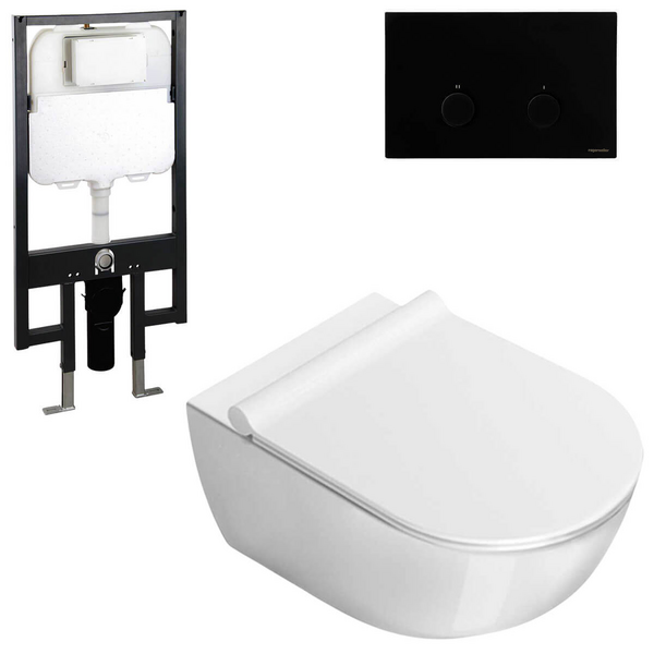 | Finish Colour Description | Gloss White toilet, Matte Black flush plate. |