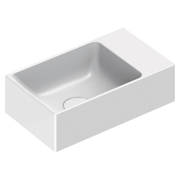 Mounted directly to the wall, the Verso 40x23 creates a clean, floating effect that opens up floor space and enhances accessibility. The wall-hung format is especially suited to contemporary interiors, delivering both visual lightness and practical performance. Its single tap hole configuration supports a streamlined setup with a compact basin mixer, keeping surfaces tidy and clutter-free.