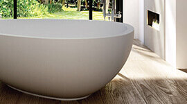 Inspired by nature, the Cove bath’s unique triangular form maximises space and creates a striking focal point. Perfect for positioning in a corner, it brings sculptural beauty and intelligent design to any bathroom.