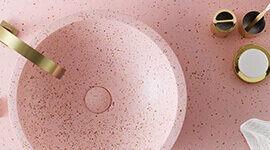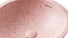 The Blush Terrazzo finish features soft pink tones embedded with natural stone fragments, creating a subtle mosaic of texture and colour. It brings warmth and personality to the basin, adding a playful yet elegant accent to neutral or richly toned interiors.