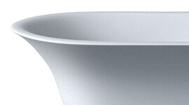 Finished in luminous Dover White and crafted from Claybrook’s signature MarbleForm, each piece is hand-finished to a smooth, velvety surface that reflects light with subtle softness. Durable yet delicate in appearance, it offers both tactile beauty and lasting performance in daily use.