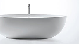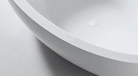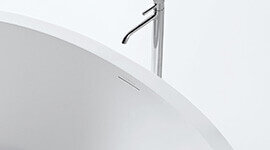 A discreet integrated overflow maintains the bath’s seamless silhouette while providing practical water control. Subtly incorporated into the design, it preserves the sculptural purity of the form without compromising on everyday functionality.