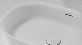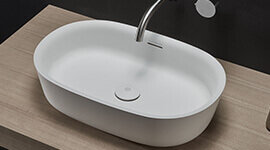 The Soho basin features a crisp, elongated oval silhouette with softly sloping sides. Its sculptural form introduces visual calm and balance, offering a refined presence that suits both contemporary and classic bathroom settings with effortless ease.