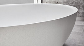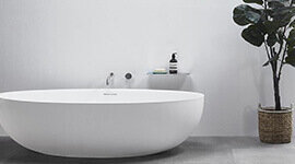 Thoughtfully crafted with Claybrook’s signature composite material, the Ellipse bath pairs enduring strength with elegant simplicity. It is designed to anchor the bathroom with a sense of calm sophistication, transforming daily rituals into experiences of quiet beauty.