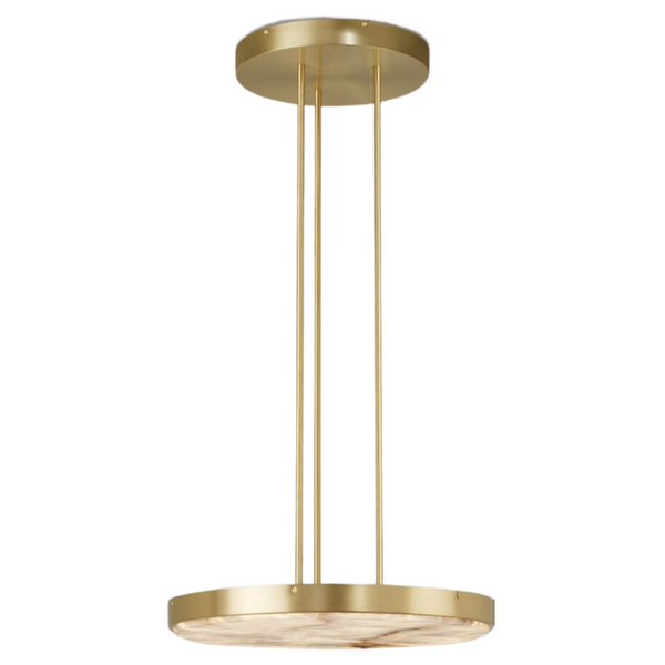Inspired by the linear plains of the Flemish landscape, the Anvers Collection reflects this low-lying profile with a refined design. The pendant features an exquisite disc of natural alabaster stone, encased within solid brass. The translucent alabaster disc, with its unique natural striations, adds a distinctive and pure elegance to any space, making each piece truly one-of-a-kind.