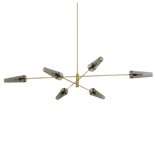 | Finish Colour Description | Satin brass with smoked glass shades / satin brass drop rod and ceiling box |