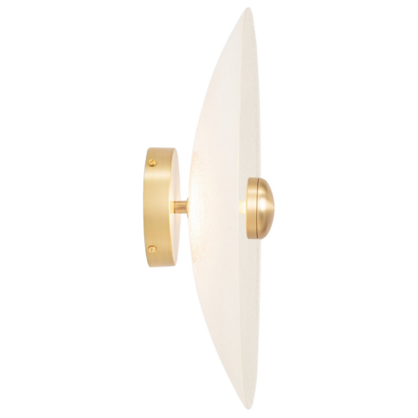 Inspired by the graceful form of architectural cupolas, the Cielo Wall Light combines a simple, elegant design with a touch of modern sophistication. The semi-transparent shallow dome, paired with a satin brass or bronze cupped centre, reflects the light in a way that is both functional and ethereal. Ideal for spaces with narrow profiles, such as staircases and corridors, the Cielo Wall Light brings a sense of timeless beauty to any interior.