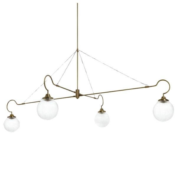 Reimagining the arts and crafts movement with a modern twist, the Floren Pendant Light features antique brass metalwork and ribbed glass shades. The contrasting metal chains not only support the structure but also add a touch of sophistication. The hand-finished antique brass reveals the underlying brass metal, protected by a wax layer, offering a light feel with a strong character. This pendant light harmonises beautifully with period features and traditional interiors, adding a touch of timeless elegance to any space.