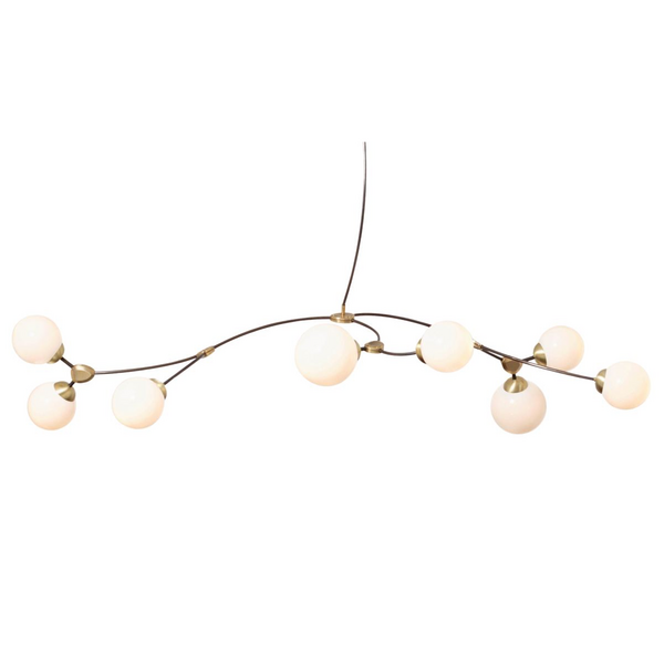 CTO Lighting Ivy Horizontal 8 Pendant Light - Bronze and Satin Brass with Opal Glass Shades IVYPE8BZGO