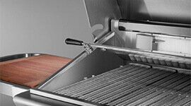 The Smart Beam grill light illuminates the cooking surface for better visibility. A 40 watt halogen light is integrated into the weather proof rotisserie motor, making it accessible and ergonomic.