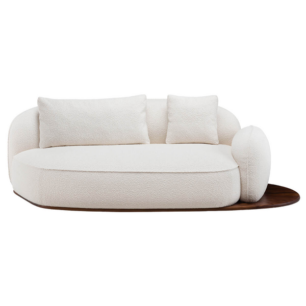 Upholstered in Elle bouclé, a textured fabric with subtle tone shifts and exceptional durability, the Miguel Sofa offers both aesthetic appeal and longevity. Designed to be arranged as an island-like anchor for your space or paired with other pieces from the Azores collection, this sofa exudes timeless sophistication.