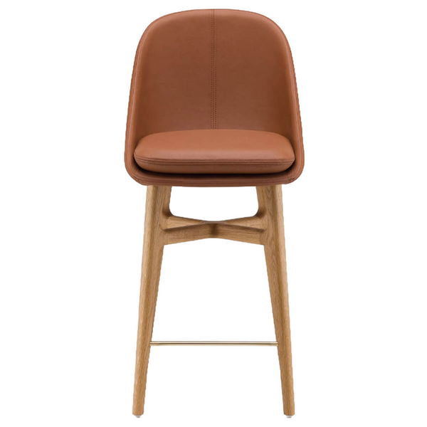 De La Espada Solo Bar Stool - Danish Oiled Oak and Brown Natural Grain Leather 750P-DOONGL