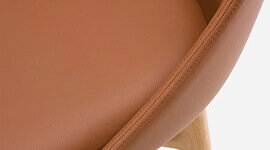 The upholstery options offer a wide spectrum of fine fabric and leather selections, enabling tailored expression through texture and tone. Whether used at a kitchen island, home bar, or commercial setting, the stool is designed to deliver comfort and visual harmony over time.