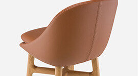 The stool’s curved backrest and seat cradle the body with sculptural precision, delivering comfort and support ideal for extended sitting at a kitchen island or bar.