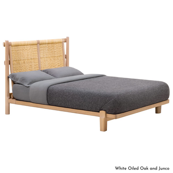 | Material | Bed Frame: white ash timber finished in white oil. Headboard: woven junco |