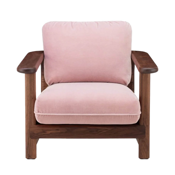 Expertly crafted at De La Espada’s solar-powered factory in Portugal, the chair’s solid wood frame is shaped with soft curves and precise joinery, featuring rounded corners and exposed end-grain detailing at the back that speaks to a deep respect for material and technique. The proportions are thoughtfully designed to support a relaxed, reclined posture, while the generous cushions are carefully upholstered for lasting comfort. The result is a lounge chair that feels both grounded and graceful, ideal for living rooms, libraries, or serene corners of the home.