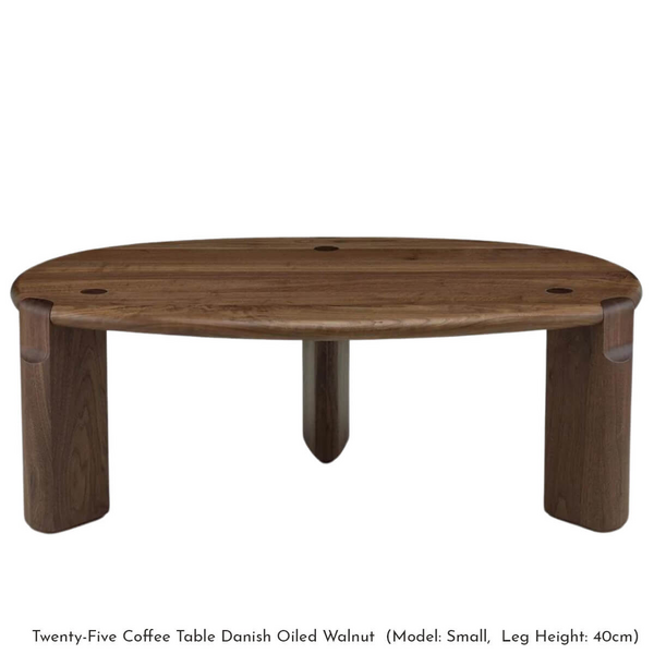 Available in a range of sizes, the Twenty-Five Coffee Table highlights the craftsmanship and artistry of solid wood. Subtle details, like the expertly scooped-out legs and seamless joinery where the legs meet the tabletop, reflect the meticulous care that goes into every element of its design. Whether you're styling a minimalist modern living room or layering textures in a more eclectic space, this table effortlessly adapts while maintaining its serene presence.