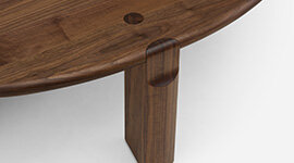 The Twenty-Five Coffee Table showcases the natural beauty of solid wood, with its refined scooped leg details and expertly crafted joinery. Where the legs meet the tabletop, the seamless intersections highlight the artistry of traditional woodworking, creating a piece that is both functional and visually captivating.