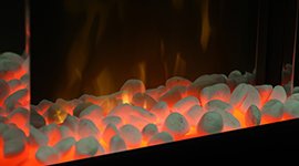 Using a system of mirrors and lights, this heater recreates the cosy ambiance of a roaring fireplace, all without the soot and smoke. If you need to change the lightbulbs that create this effect, just remove the pebbles and unscrew the panel underneath.