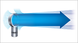 Dyson’s patented Air Multiplier technology circulates the air in this unit through an annular aperture – the circular tube – to create a high-velocity jet of air. The high-velocity air leaving this fan creates a low pressure environment behind the fan which increases air flow using physics alone.