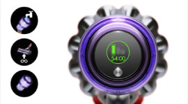 The vacuum’s Motorbar cleaner head features de-tangling vanes that automatically clear wrapped hair from the brush bar, making it especially effective for homes with pets. Paired with the Hair Screw tool, it effortlessly tackles hair on upholstery, stairs, and in vehicles. The unit’s LCD screen delivers real-time updates on run time and performance, helping users stay in control during every clean.
