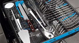 From multiple cutlery sets to over-sized utensils, the flexible dividers mean you can customise the drawer according to the load. Flatware is kept separate from larger items and the added depth increases the capacity for each cycle.