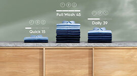 IntelliQuick automatically selects the fastest program for your 12kg load, delivering efficient washing in just 45 minutes while optimising energy and water use for stress-free everyday laundry performance.