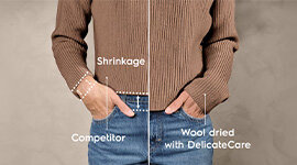 The dryer adjusts temperature and drum movement for each fabric. Silks keep their shape, woollens avoid shrinking, and waterproof items stay protected. Woolmark Blue certified.