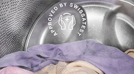 The Sanitise Program, verified by Swissatest, uses a wash and steam cycle above 60°C to remove over 99% of common bacteria and viruses, helping keep laundry hygienically clean.