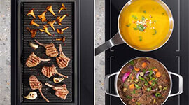 The Bridge function allows you to combine two separate cooking zones to create a single large surface. With the temperature and time settings automatically aligned, it's ideal for making the most of planchas or roasting pots.