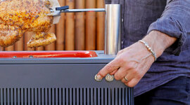 At the heart of the FUSION is the Fast Flame Ignition System, bringing charcoal to cooking temperature in just 10 minutes. Its Rotiscope Technology features a built-in rotisserie system powered by a discreet motor, complete with multi-level manual height adjustment and a 15kg capacity. The One Touch Rotisserie Pole System and included Cliplock Forks provide secure, balanced cooking for meats of various sizes.