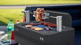 Designed with both form and function in mind, the minimalist aesthetic draws inspiration from Danish design principles. The hinged chrome grill allows for easy charcoal reloading during cooking, while the removable charcoal tray and single-piece porcelain enamel firebox make cleaning straightforward. Freestanding legs provide portability, allowing the FUSION to be positioned on a variety of surfaces for flexible outdoor cooking.