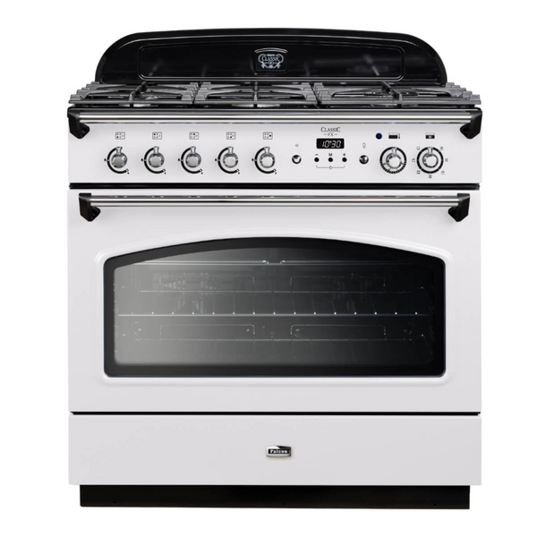 Falcon 90cm Classic FX Stone White-Chrome Dual Fuel Freestanding Oven CLA90FXDFWHCH