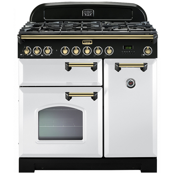 Falcon 90cm Classic Deluxe Freestanding Dual Fuel Oven/Stove White and Brass CDL90DFWH-BR
