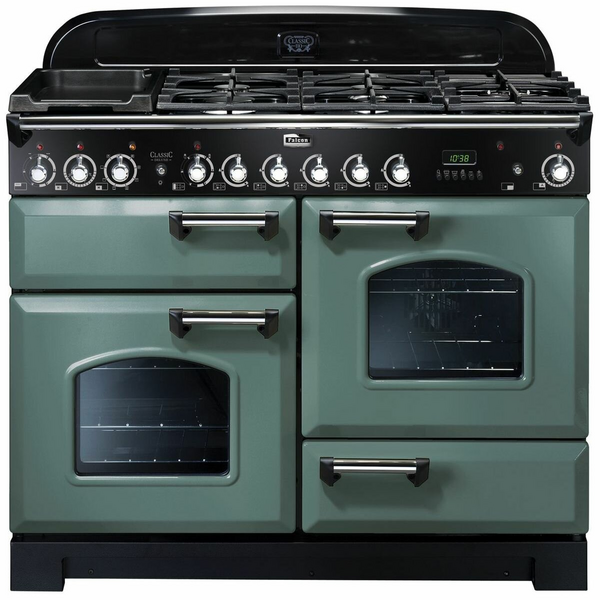 Falcon 110cm Classic Deluxe Freestanding Dual Fuel Oven/Stove Mineral Green and Chrome CDL110DFMGCH