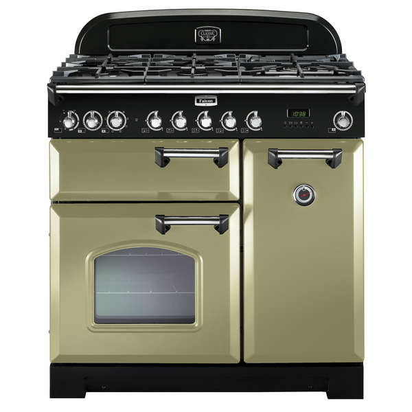 Falcon 90cm Classic Deluxe Freestanding Dual Fuel Oven/Stove Olive Green and Chrome CDL90DFOG-CH
