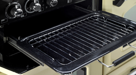 Falcon’s deluxe glide-out grill positioned on smooth telescopic runners, includes a four way grill trivet for multiple grilling level positions. The grill has two elements that allow either the whole area of the pan to be heated or just the right-hand half.